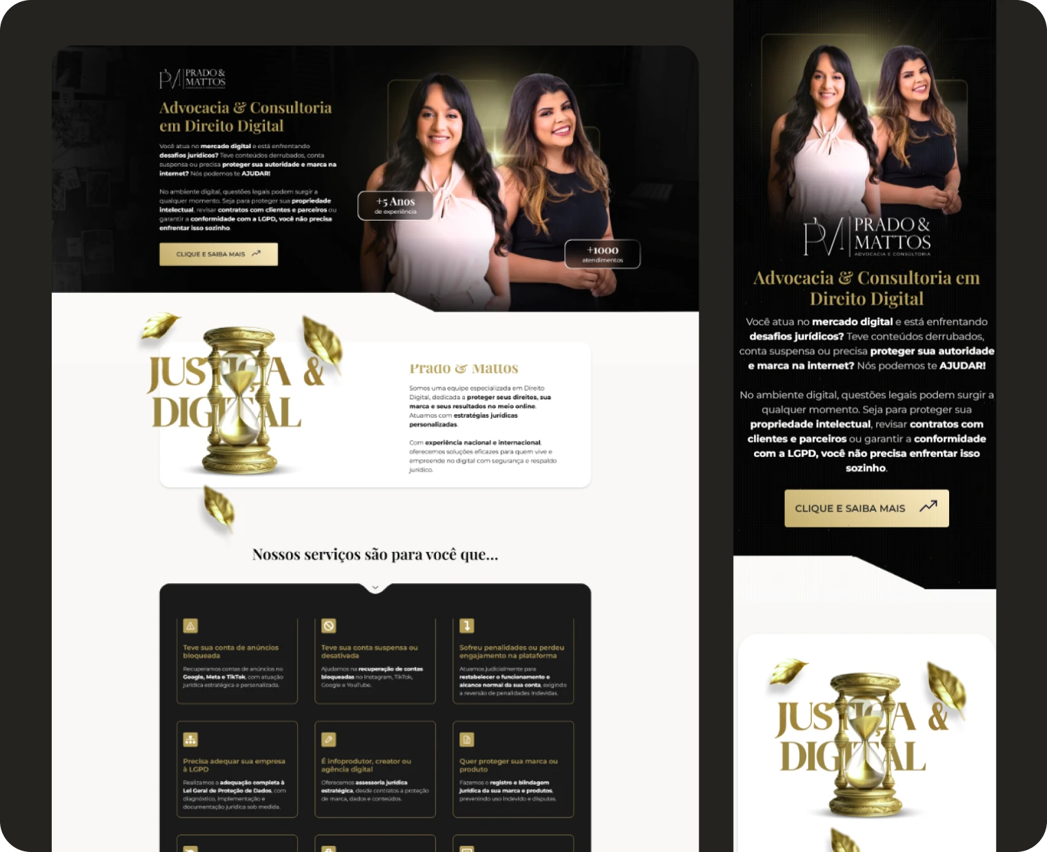 Criamos sites, landing pages e ecommerce personalizados para profissionais e empresas de alto padrão, como médicos, advogados e grandes corporações, que desejam um posicionamento digital exclusivo e impactante. Está pronto para se destacar e dominar o mercado?